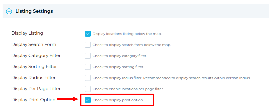 Step 2 Enable the Display Print Option inside the Display Listing tab.