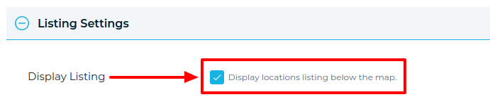 Step 1 Go to Add or Edit Map and scroll down to the Listing Settings section.