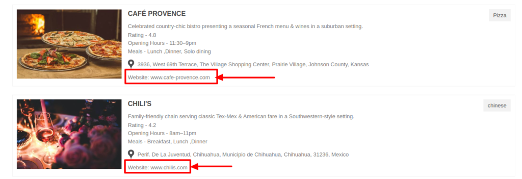 The content of each listing in the item can be altered using certain placeholders. Extra fields can be displayed by inserting {extra_field_name} into the text, and custom fields created for the list can be featured by adding {%custom-fields-name%}.