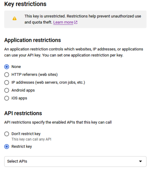 You can also secure your API key, while visiting to the credential page. From this, you will check your API key is unrestricted. There will be unauthorize use for your API key after doing so.