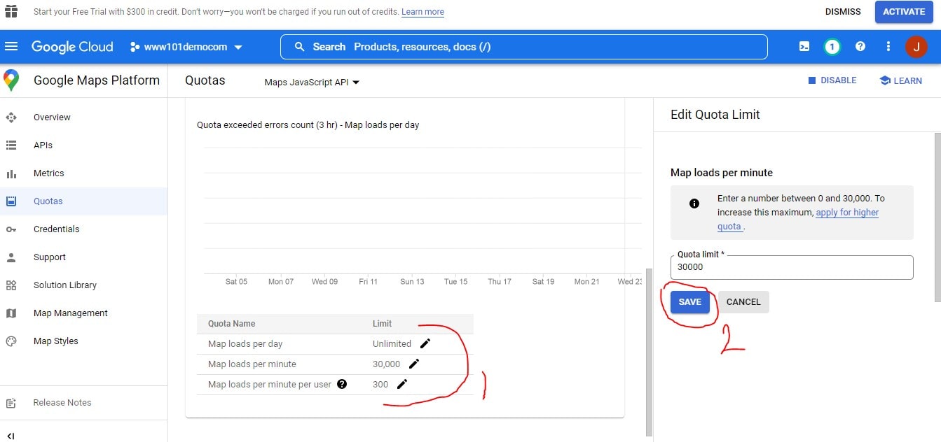 When you try to open a map in the Google Map Platform, you may see the error: “OverQuota MapError”. This error means your project is over its quota for Maps API requests. You’ll need to increase your quota in the Google Cloud Platform Console to fix this follow the steps above.